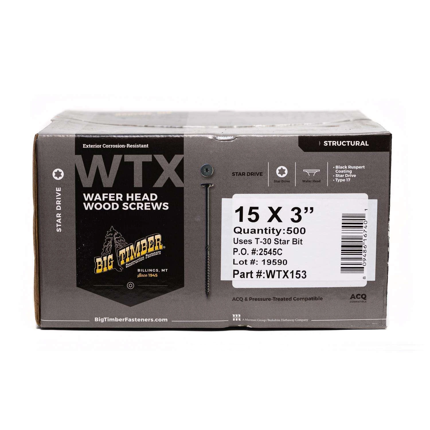 Big Timber No. 15 Ga. X 3 In. L Star Black Structural Wood Screws 500 Pk