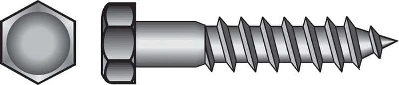 Zinc hex lag screws provide adequate corrosion and rust protection, making it a good choice for outdoor projects. Common applications include retaining walls, deck frames and outdoor play equipment. This zinc hex lag screw has coarse threads designed for pre-drilled holes to prevent splitting or snapping and requires minimal clearance above the fastener. It has a hexagonal drive for simple installation and controlled traction with a socket or wrench. Zinc finish provides fair corrosion and rust protection Designed to attach objects to wood and anchor mason Coarse threads requiring a pre-drilled hole with minimal clearance above the fastener