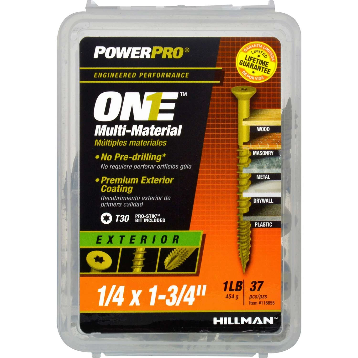 Hillman POWERPRO ONE 1/4 In. X 1-3/4 In. L Star Flat Head Multi-Material Screw 1 Lb 37 Pk