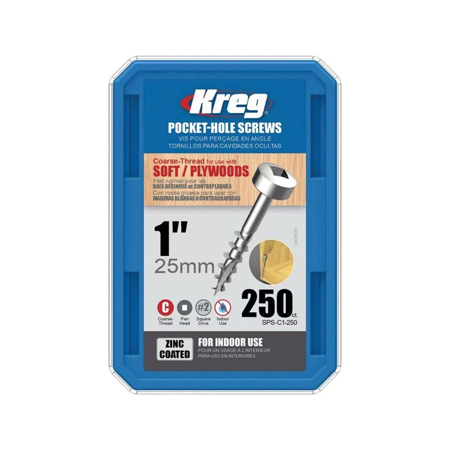 Kreg No. 7 X 1 In. L Square Zinc-Plated Pocket-Hole Screw 250 Pk